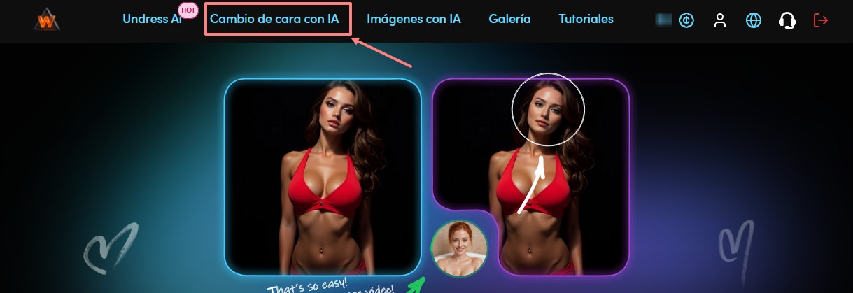 Ve a la sección "Cambio de cara IA"