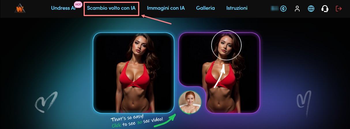Vai alla sezione "Sostituzione volto IA"