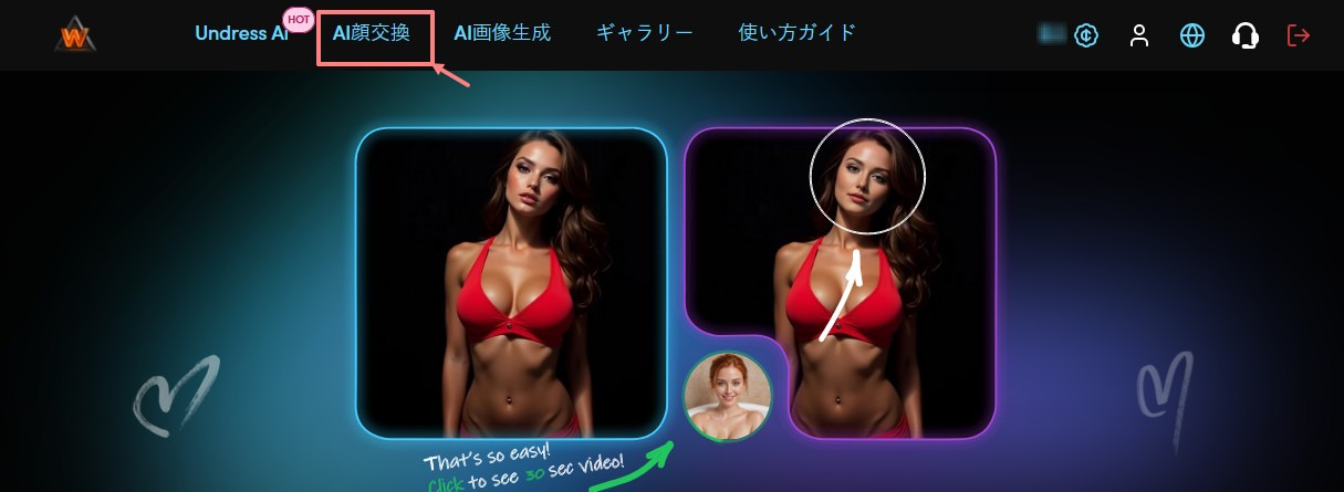 「顔交換AI」セクションに移動